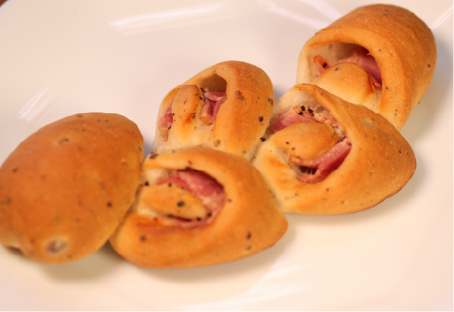 雑穀ベーコンエピ麦の稲穂のカタチをしたエピ、ブラックペッパーが効いてワインにも最適です